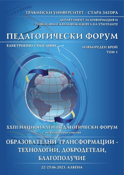 Сборник с доклади от XXIII Национален педагогически форум с международно участие на тема „Образователни трансформации – технологии, добродетели, благополучие”, който ще се проведе на 22-25.06.2023 г.