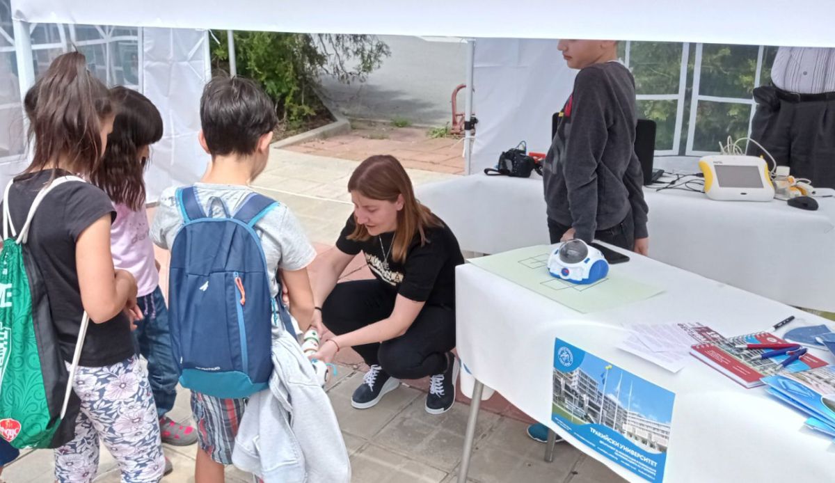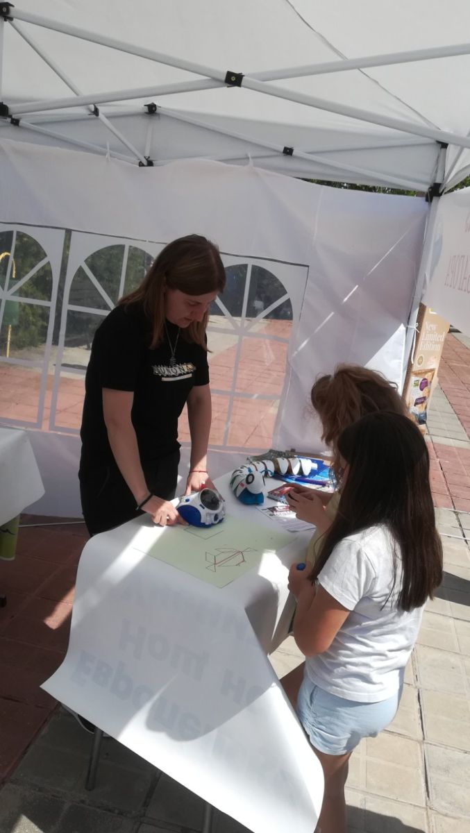 Ас. Желязкова представи роботите Code-a-Pillar и Mind Designer, и техните възможности за кодиране, чертане на геометрични фигури и интерактивна игра с танграми. Роботизираните играчки предизвикаха голям интерес сред малките посетители на фестивала.