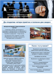 Екипът на ДИПКУ - Стара Загора има удоволствието да Ви покани на XXIV Международен педагогически форум на тема „Образователни политики и практики за благоденствие и устойчивост”. Събитието ще се проведе на 27 - 30 юни 2024 г. в курортен комплекс ...